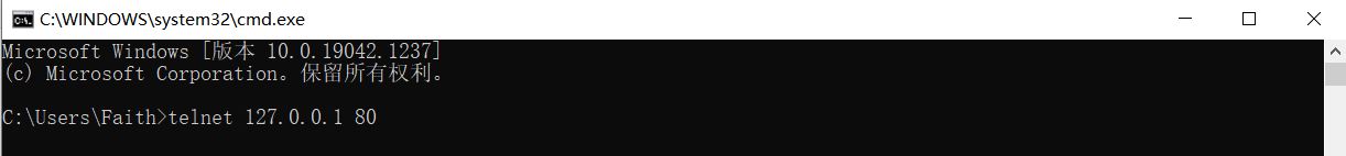 2、win+R,输入cmd,开始telnet,默认端口为23,也可以选择其他端口进行telnet登录,如下图所示