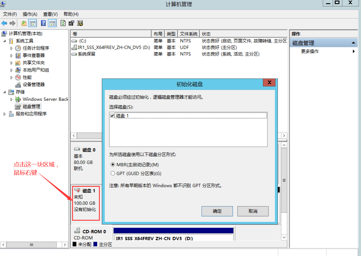 超融合中的windows虚拟机在新增硬盘之后,查看计算机本地,没有发现磁盘,此时只需要打开控制面板\所有控制面板项\管理工具中的计算机管理,之后再打开存储中的磁盘管理即可看到添加的磁盘。硬盘激活上线