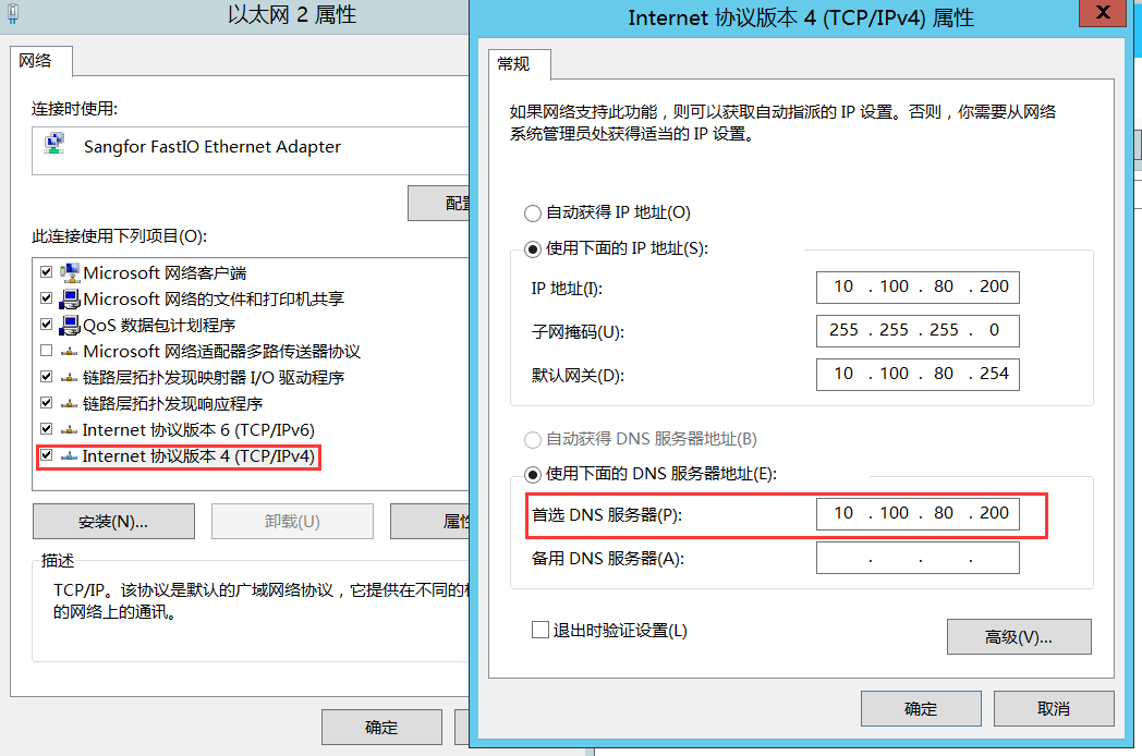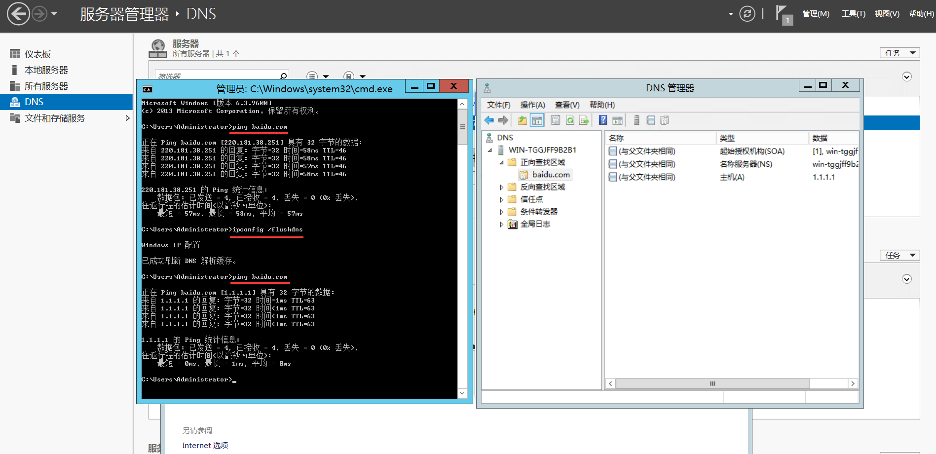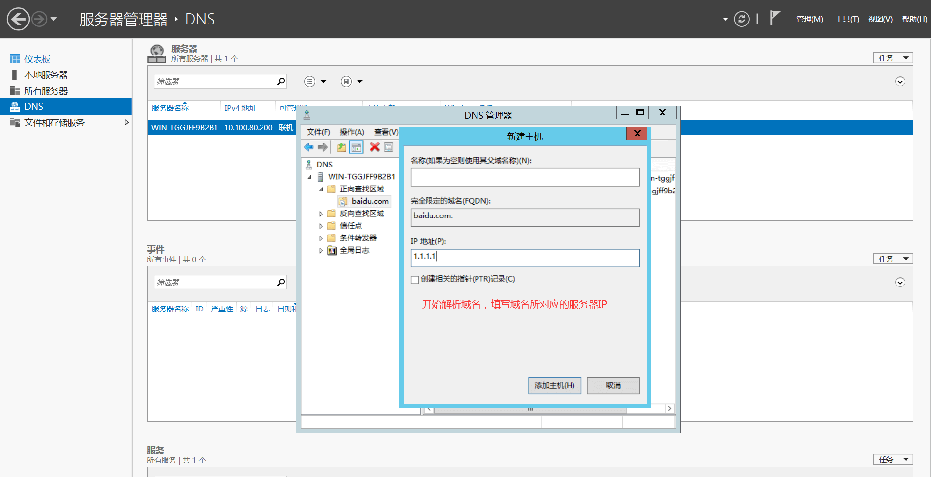 然后点击下一步即可,完成新建主机的添加,此时将内网中的主机上的DNS更改为DNS服务器的IP地址即可,此处如下